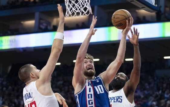 国王队首发:达龙-福克斯、多曼塔斯-萨博尼斯、哈里森-巴恩斯、克里斯-杜阿尔特、凯文-赫尔特